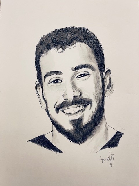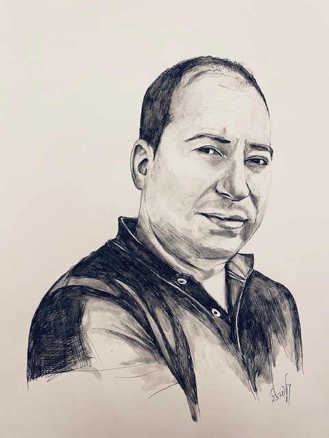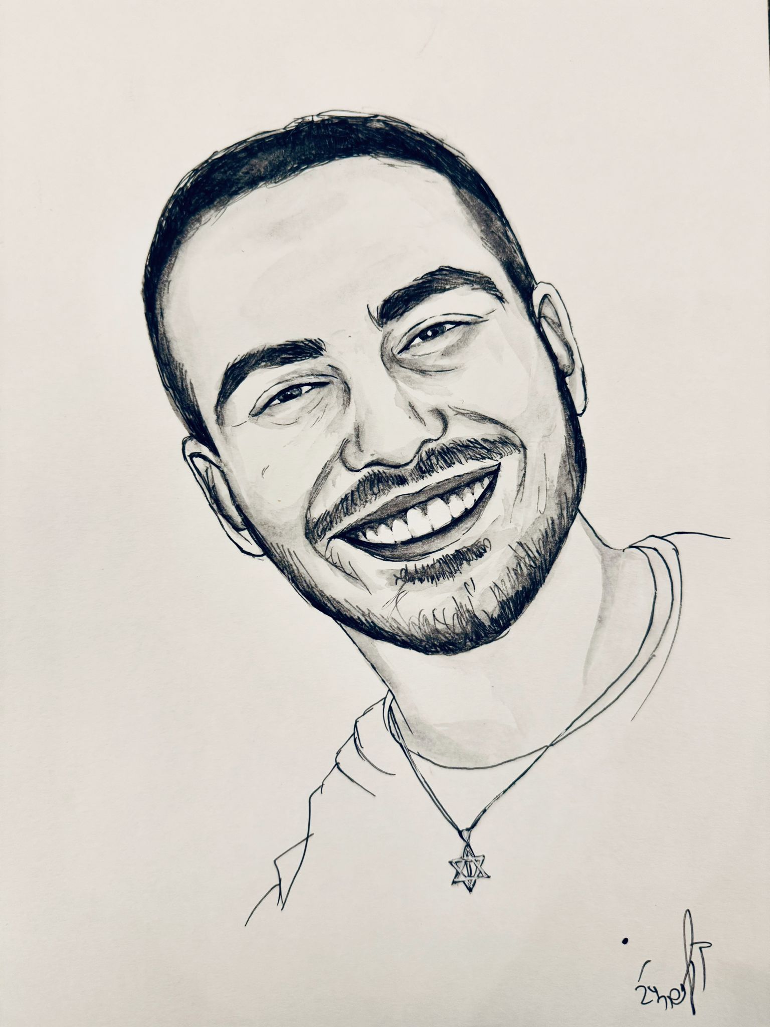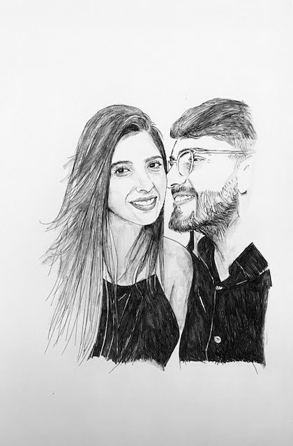 דיוקן עבודת יד, רישום עט על נייר איכותי, ממוסגר ועטוף מכל הלב, כל מה שאתם צריכים זה רק לשלוח תמונה